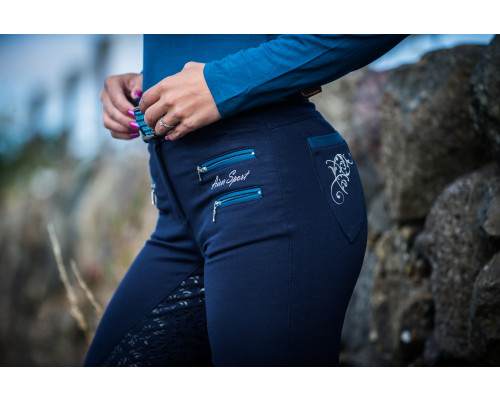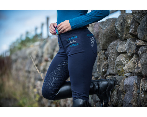 Aiver Sport 4D breeches are a innovative product and as such we were nominated at BETA 2018 for the innovation award. Our breeches are made from a technical fabric which stretches in 4 ways to accommodate a women’s body shape without digging in or falling down. We have cut our breeches in a way that they are flexible and move with your body, everyone comments on how well designed they are and in particular how comfortable they are particularly around the knee area. They have our famous gel patches in a beautiful filigree pattern . These patches give the rider security and grip whilst in the saddle , our customers love them !